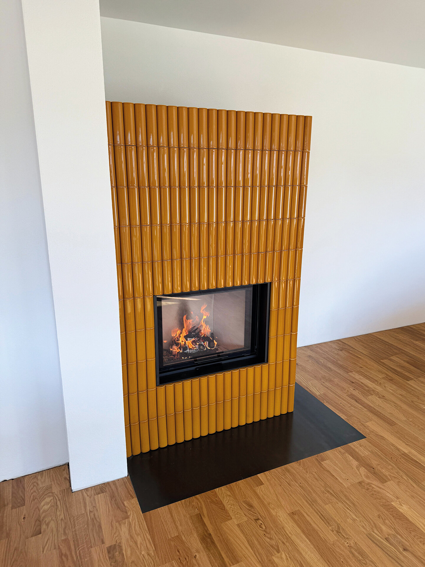 Valentin Gschwend: Ja, absolut. Zum einen der Kachelofen, der mit dem Designpreis „Ofenflamme 2025“ ausgezeichnet wurde. Eine wirklich superschöne Anlage mit vielen liebevollen Details und dazu noch super nette Kunden. Außerdem zwei große Gaskamine: Einer mit beeindruckenden 6 Metern Länge und 4,5 Metern Höhe, der andere mit einer Verkleidung aus rohem Stahl und einer massiven Sitzbank aus Holz von 5 Metern Länge. Was diese Projekte unvergesslich macht, ist die intensive Auseinandersetzung mit jedem einzelnen Detail. Oft denken wir selbst nachts darüber nach – ich denke der ein oder andere weiß von was ich rede – wie sich bestimmte Herausforderungen am besten lösen lassen. Genau das ist es, was unseren Beruf ausmacht: die Kombination aus technischer Präzision, kreativer Planung und dem Moment, in dem alles zusammenkommt und die Kunden begeistert sind.