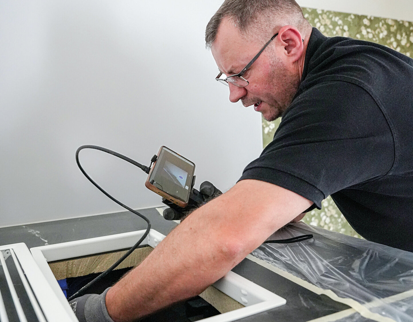 Zunächst kontrollierten wir, ob alle Lüftungskanäle frei und ohne Auffälligkeiten waren. Eine mögliche Ursache – wie vom Kunden vermutet – konnte hier ausgeschlossen werden.