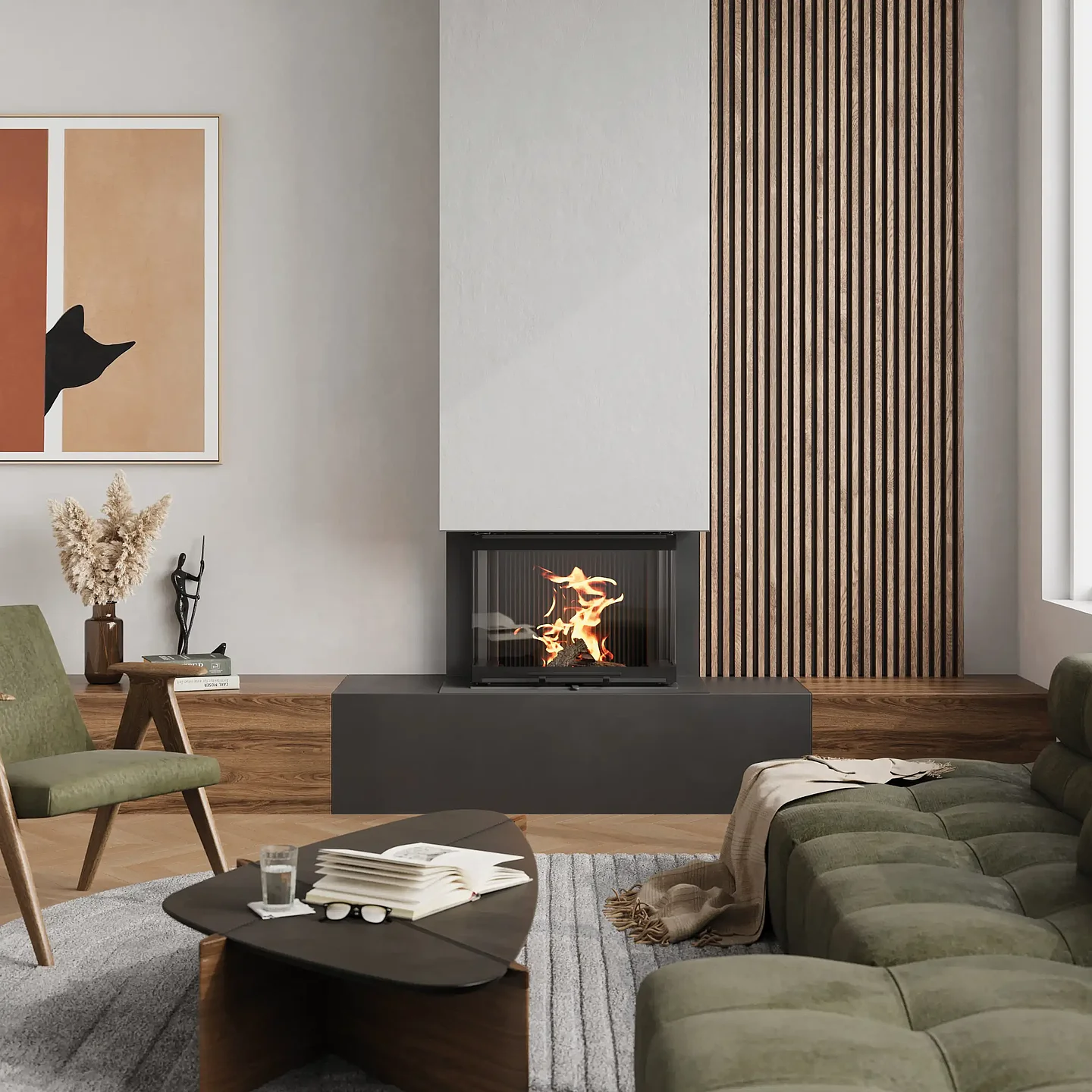 Un insert de cheminée en acier constitue le cœur de votre installation de cheminée - qu'il s'agisse d'un foyer au gaz ou d'une variante au bois, avec ou sans technique à eau. En collaboration avec votre installateur de poêle, vous choisissez le format adapté et le mode de construction le plus efficace pour votre habitat. De grandes vitres, des formats modernes et des habillages personnalisés font du feu un objet design. En même temps, la cheminée assure une chaleur agréable, avec une technique d'accumulation supplémentaire si vous le souhaitez. Nos accessoires de cheminée allient efficacité et précision technique : des solutions d'accumulation intelligentes à l'allumage extérieur. Découvrez des concepts de cheminée uniques avec des détails bien pensés qui perfectionnent votre expérience du feu.