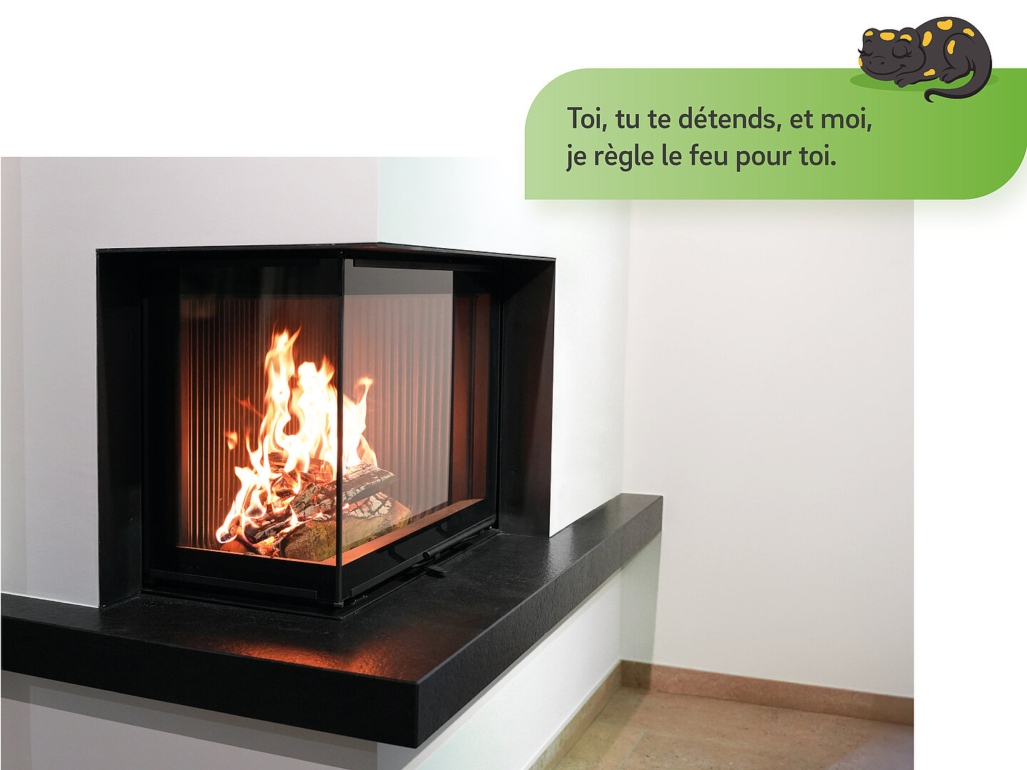 La bonne quantité d'air de combustion détermine l'efficacité de ton foyer. Adera se charge automatiquement de cette tâche et adapte avec précision l'apport d'air à chaque phase de combustion. Cela permet non seulement d'obtenir une combustion particulièrement propre et complète, mais aussi de tirer le maximum de chaque bûche. Tu utilises ainsi l'énergie de manière optimale, tu réduis la consommation et tu fais en même temps quelque chose pour l'environnement et ton porte-monnaie. Tout ce que tu as à faire : mettre du bois, l'allumer et le recharger de temps en temps, Adera s'occupe du reste.
