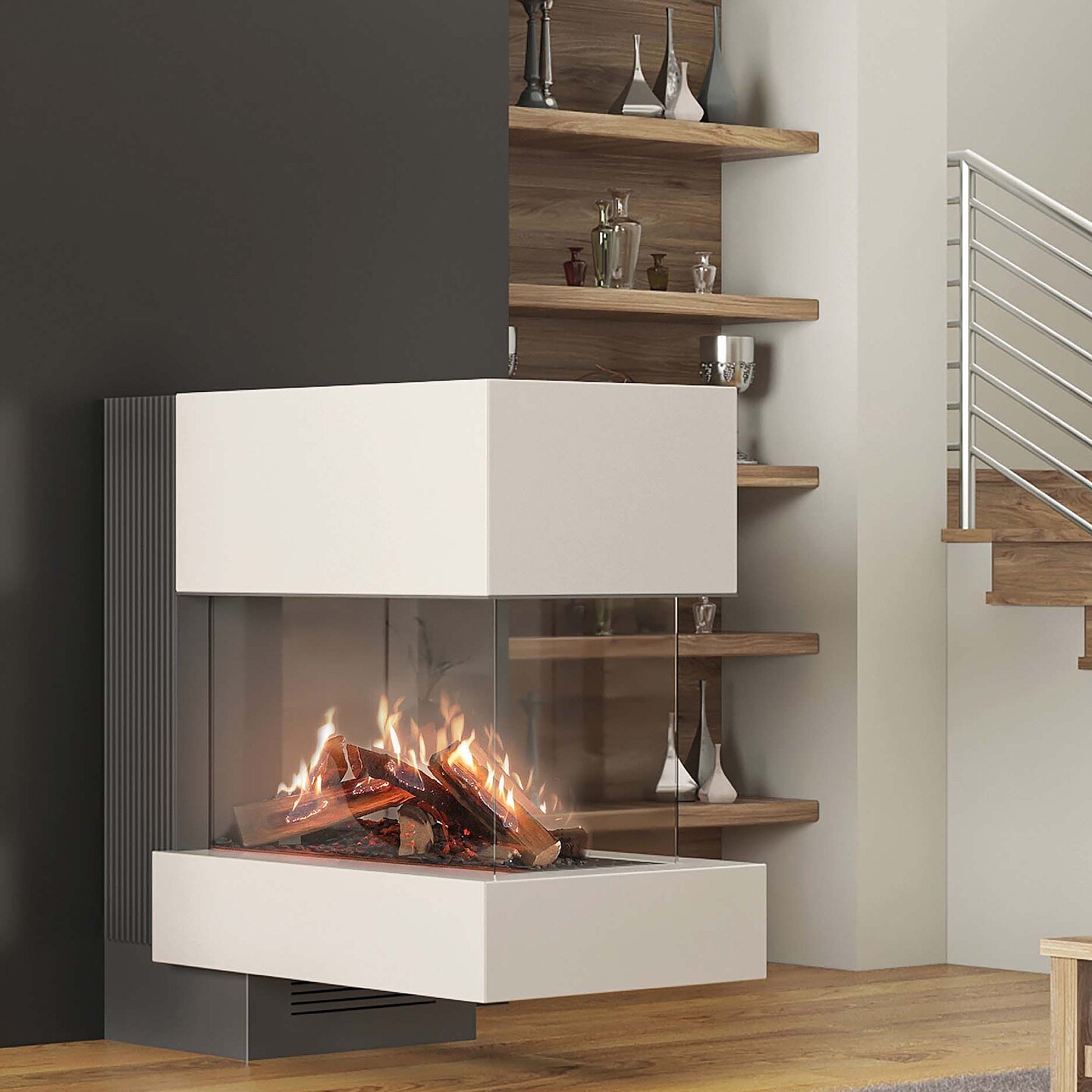 Gas-Kamine (mit Erdgas oder Flüssiggas) liefern schnell Wärme und erlauben oft eine realistische Flammenprojektion. Allerdings gelten Gasbrennstoffe als fossile Energie. Bei Förderprogrammen für Neubau gilt daher: Heizsysteme mit Gas sind ausgeschlossen.