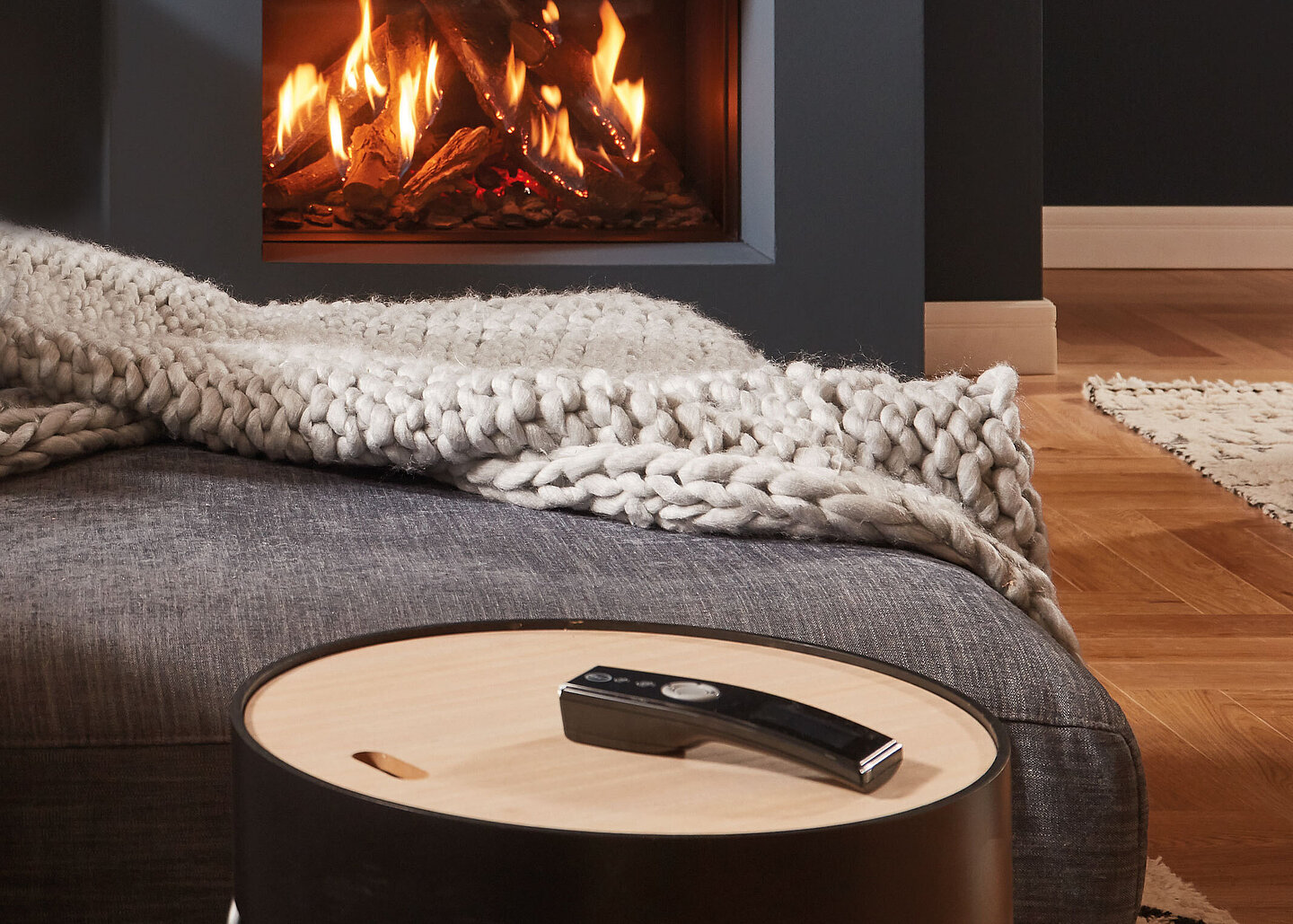 Die Display-Fernbedienung unserer Gaskamine ermöglicht nicht nur eine Bedienung vom Sofa aus, sondern fungiert zusätzlich als Sicherheitselement. Das Feuer ist in acht Stufen einstellbar. Diese acht Stufen bleiben in ihrer jeweiligen Flammenhöhe konstant und erzielen ein gleichmäßiges Flammenbild. Es gibt zudem eine neunte Stufe — die ECO-Einstellung. Während des Programms variiert das Gerät die vorherigen Flammenhöhenstufen. Dies ergibt ein bewegtes Flammenbild und verwendet weniger Energie.