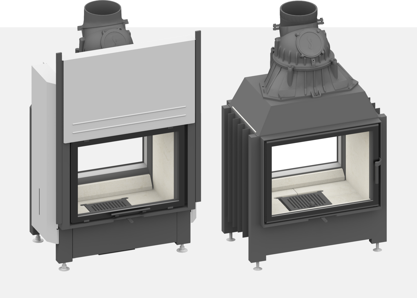 Die Rückwand und Seitenteile bestehen aus robusten Gussplatten, die in attraktiver Rippenform gegossen sind und so als markantes Designhighlight überzeugen. Dieses besonders strapazierfähige Material garantiert Langlebigkeit und Stabilität. Der Boden ist mit anthrazitfarbener Schamotte ausgekleidet. Diese perfekte Kombination verleiht dem Innenraum des Kamins eine elegante und gepflegte Optik. (Nur in der 51er Höhe erhältlich.)