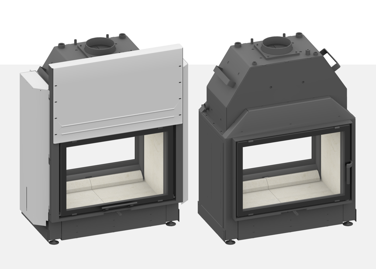 Die Rückwand und Seitenteile bestehen aus robusten Gussplatten, die in attraktiver Rippenform gegossen sind und so als markantes Designhighlight überzeugen. Dieses besonders strapazierfähige Material garantiert Langlebigkeit und Stabilität. Der Boden ist mit anthrazitfarbener Schamotte ausgekleidet. Diese perfekte Kombination verleiht dem Innenraum des Kamins eine elegante und gepflegte Optik. (Nur in der 51er Höhe erhältlich.)