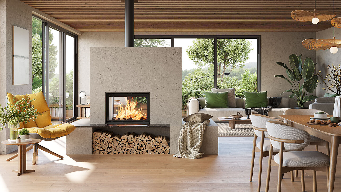 Unsere wassergeführten Kamine erwärmen den Aufstellraum und unterstützen gleichzeitig sowie umfänglich Ihre Zentralheizung. Das Wasser heizt sich im Hintergrund auf, während im Vordergrund die klassische Kaminatmosphäre den Raum erfüllt.