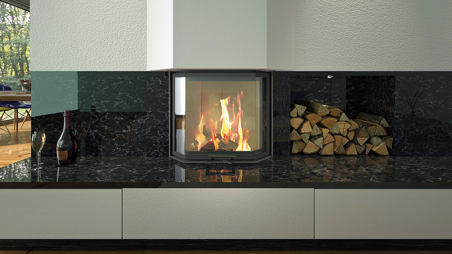 Der Brennraum ist mit massiver Schamotte in Beige oder Anthrazit ausgekleidet – ganz nach Ihrem Geschmack. Aufgrund der hohen Dichte ist Schamotte strapazierfähig und langlebig.